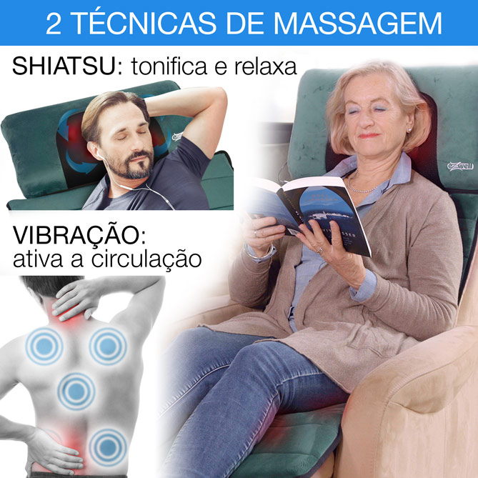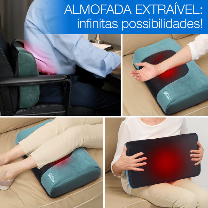 É extraível e poderá usá-la tanto para aliviar a parte superior e inferior das costas como o pescoço e os ombros, os pés, a barriga das pernas ou em qualquer outra parte do corpo. Também poderá personalizar todas as terapias com o comando à distância!