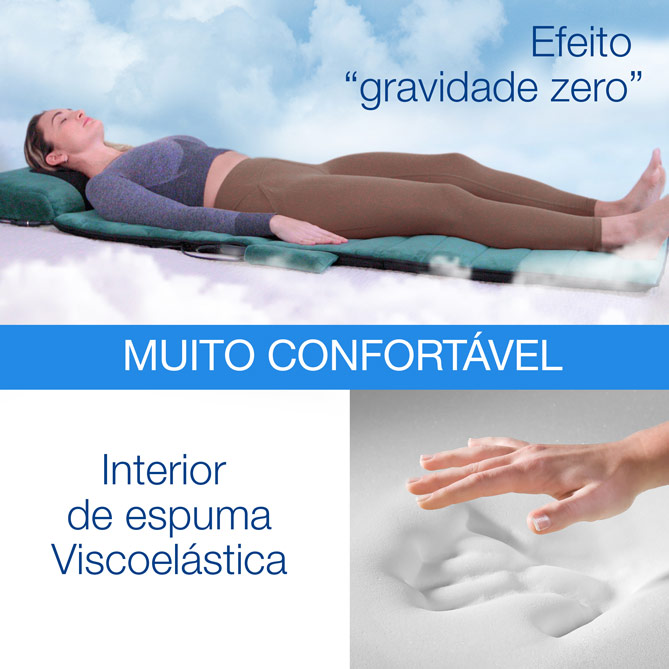Ao reclinar-se na superfície de viscoelástica, os infravermelhos relaxam o corpo desde a cabeça até aos pés. Sentirá como as suas ondas suaves relaxam e reconfortam todo o corpo.